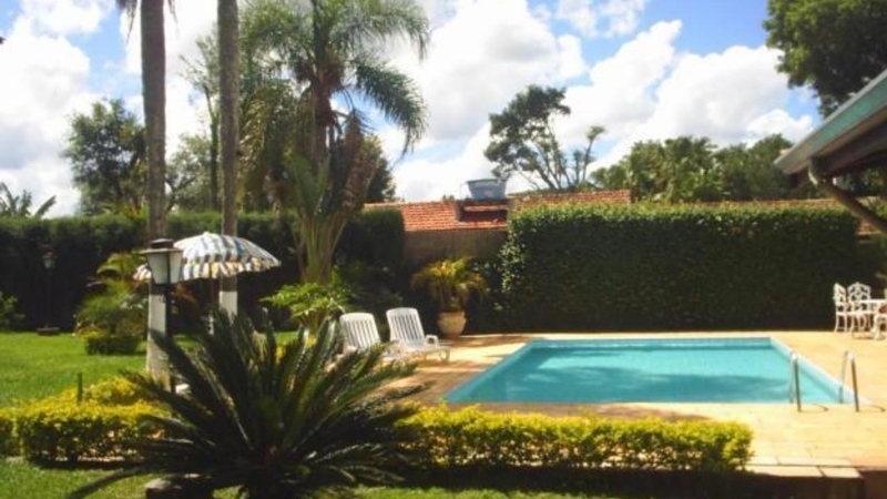 Chácara com 5 quartos, 4 banheiros e acomodações para mais de 20 pessoas.