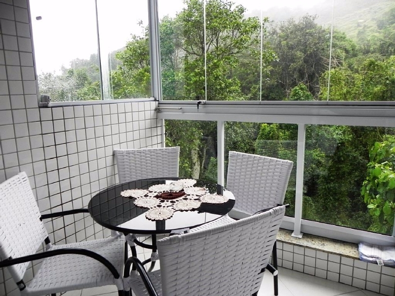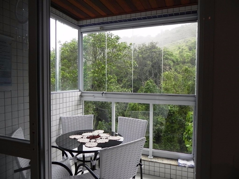 - Sacada: Mesa 4 lugares de frente para mata (TOTAL PRIVACIDADE) / Cortina de Vidro basculante