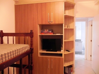 - 1 - Quarto: TV (tela plana) / ar condicionado / armário / 1 Cama Box Solteiro com cama auxiliar / Beliche