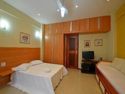 Equipado com cama de casal, uma bicama), TV LCD, ar condicionado, ventilador de teto, guarda roupas.