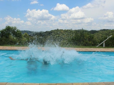 Chales com espaço pra 6 pessoas ou mais. Com churrasqueira, cozinha completa, dois quartos, sala, 2 beliches e 1 cama de casal, piscina, salão de jogos, campinho de futebol, trilha, lago pra pesca, espaço para festa.